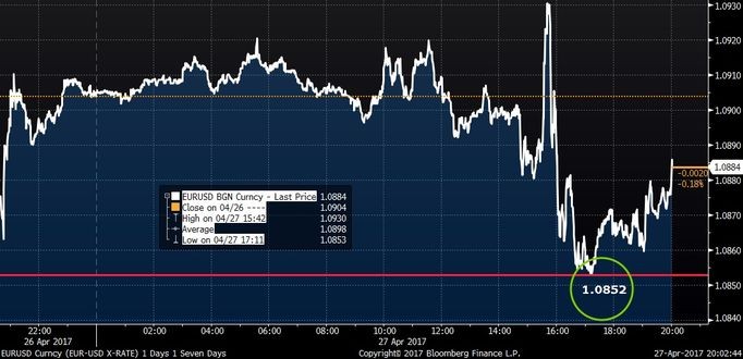 "Marja" xəbər verir ki, EUR/USD məzənnəsi 1.0854 səviyyəsini görüb. Bundan əvvəl məzənə 1.09 səviyyəsinin üstündə idi.
