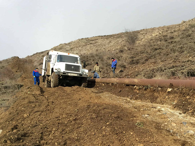 Qəza-bərpa işlərinə cəlb olunmuş texnikaların maneəsiz hərəkəti üçün kəmərin marşrutu boyu mümkün olan yerlərdə istismar yolu salınıb, texnikaların hərəkətinin mümkün olmadığı yerlərə isə mal-materiallar əllə daşınaraq təmir işlərinə başlanılıb. Mürəkkəb relyefə malik ərazidə, meşə və dağ şəraitində magistral su kəmərinin qəzalı hissələri təmir edilib və 25 noyabr 2020-ci il tarixində Şuşa şəhərinə suyun verilişi təmin olunub.