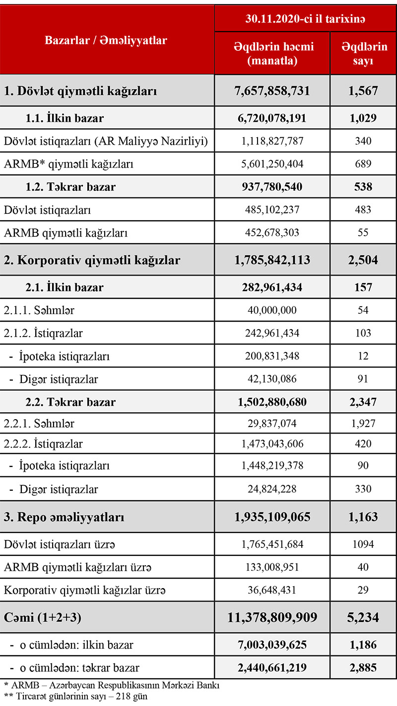 Müqayisə üçün qeyd edək ki, ötən ilin yanvar-noyabr ayları ərzində Bakı Fond Birjasında qiymətli kağızlar üzrə keçirilən əməliyyatların ümumi həcmi 13 milyard 5 milyon 127 min manat təşkil etmişdi.