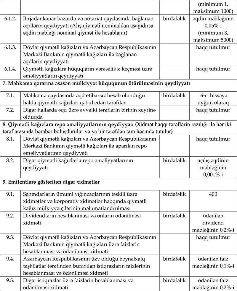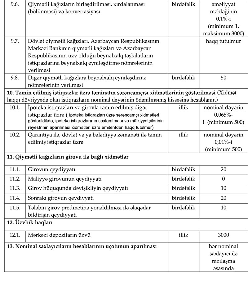 Milli Depozit Mərkəzinin xidmət haqları müəyyənləşib