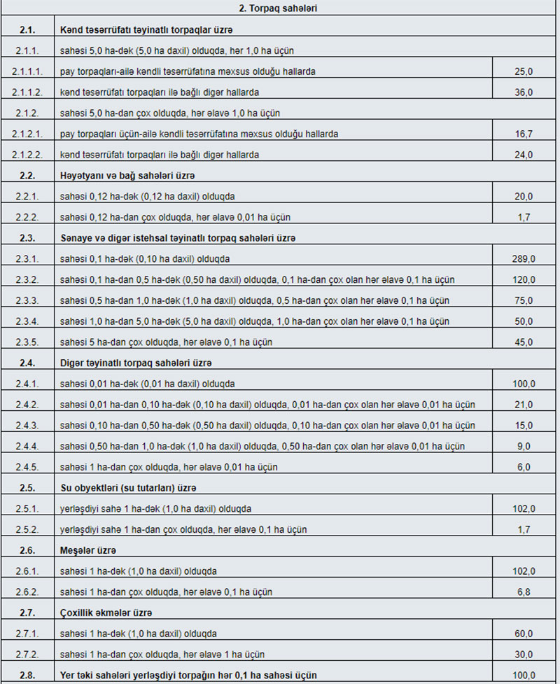 - sahəsi 0,12 ha-dək olduqda - 20 AZN (əvvəl 12 AZN)