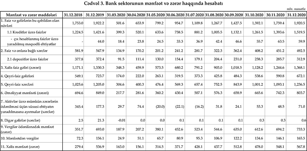 31 dekabr 2020-ci il tarixinə olan bank sektorunun əsas göstəriciləri açılqanıb.