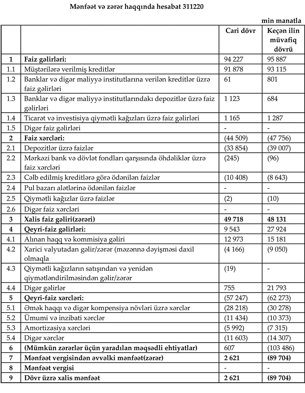 Ötən il Bankın faiz və qeyri-faiz xərcləri azalıb. Ötən il Bankın cəmi faiz və qeyri-faiz gəlirləri 103 milyon 770 min manat, cəmi faiz və qeyri-faiz xərcləri 101 milyon 756 min manat təşkil edib. 2019-cu ilə müqayisədə 2020-ci ildə cəmi gəlirlər 20 milyon 41 min manat, cəmi xərclər isə 8 milyon 273 min manat azalıb.