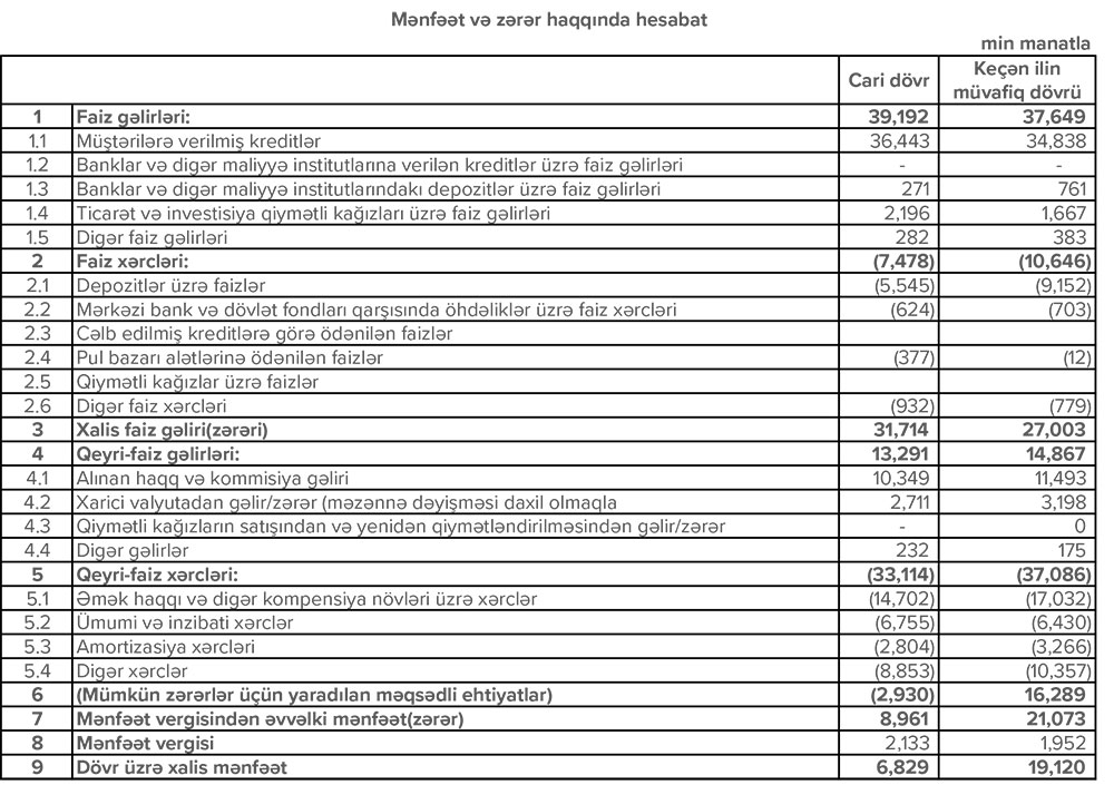Müqayisə üçün qeyd edək ki, 2019-cu ildə “Expressbank”ın əməliyyat gəlirləri 52 milyon 516 min manat, əməliyyat xərcləri 47 milyon 732 min manat, əməliyyat mənfəəti 4 milyon 784 min manat təşkil etmişdi.