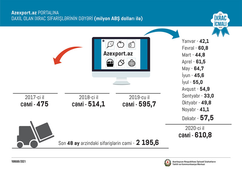 İqtisadi İslahatların Təhlili və Kommunikasiya Mərkəzinin “İxrac İcmalı”nın 2021-ci ilin yanvar sayı təqdim edilib.