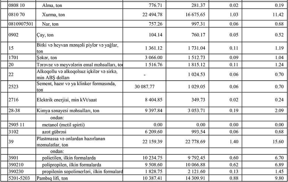 Azərbaycanın ən çox ixrac və idxal etdiyi mallar