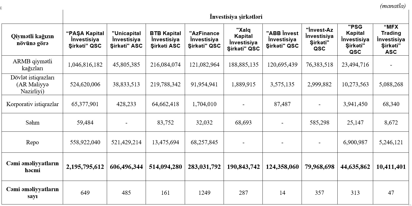 İnvestisiya şirkətlərinin dövriyyələri açıqlandı - SİYAHI