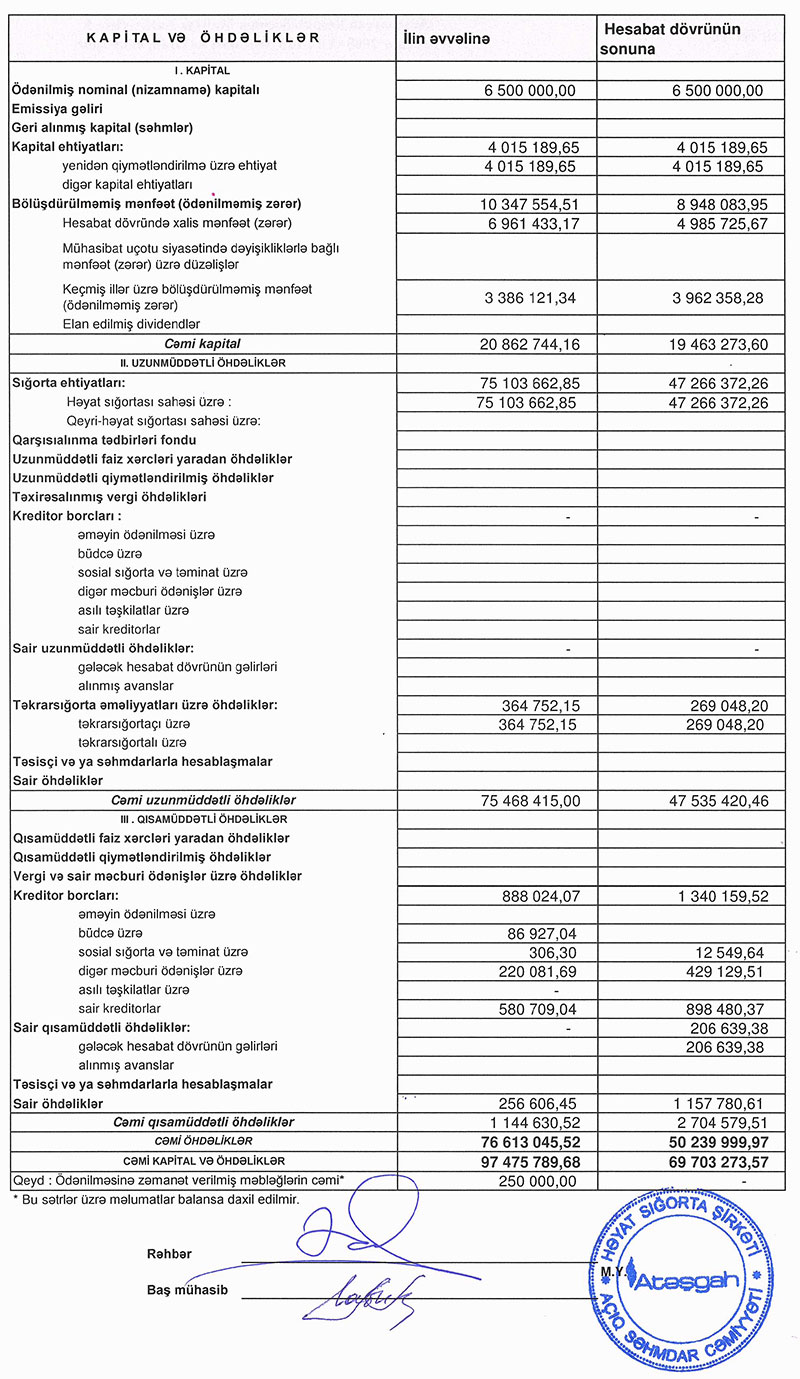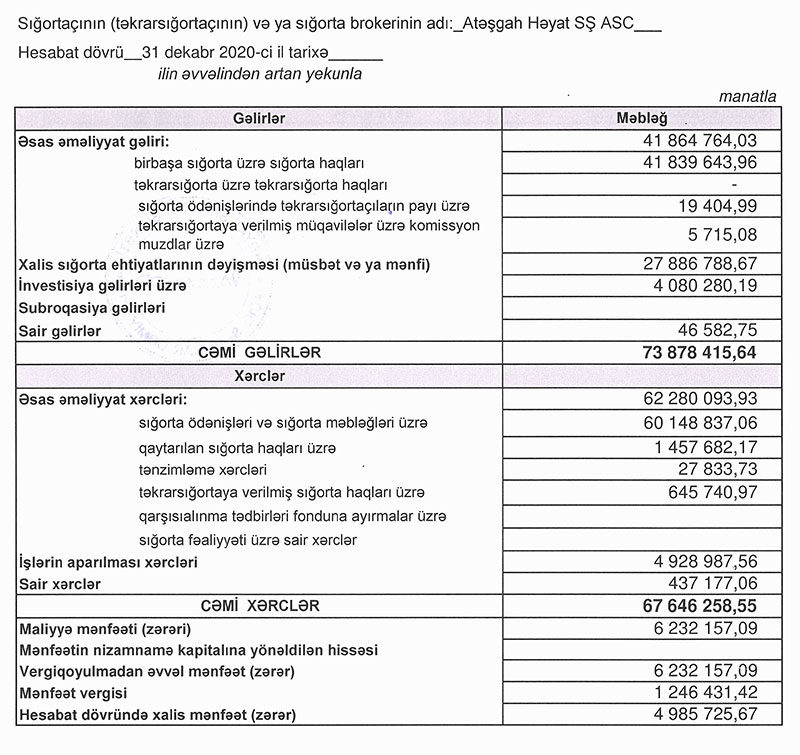 Ötən il “Atəşgah Həyat” Sığorta Şirkətinin cəmi gəlirlərinin 27 milyon manatı xalis sığorta ehtiyatlarının müsbətə dəyişməsi hesabına formalaşıb.