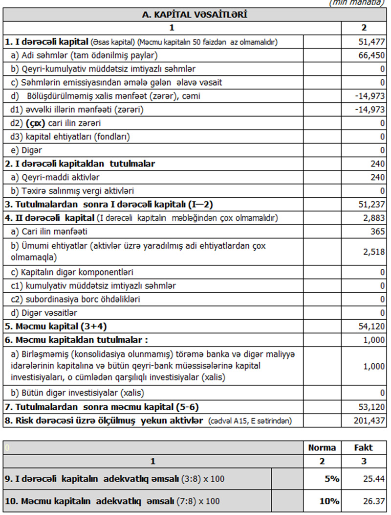 Müqayisə üçün qeyd edək ki, 2020-ci ilin 1-ci rübündə Bank “BTB”nin cəmi əməliyyat gəlirləri 7 milyon 984 min manat, cəmi əməliyyat xərcləri 7 milyon 56 min manat, əməliyyat mənfəəti 928 min manat təşkil etmişdi. Bank əməliyyat mənfəətindən 166 min manat aktivlər üzrə mümkün zərərlərin ödənilməsi üçün yaradılan xüsusi ehtiyata ayırmış və həmin dövrü 762 min manat xalis mənfəət ilə bağlamışdı.