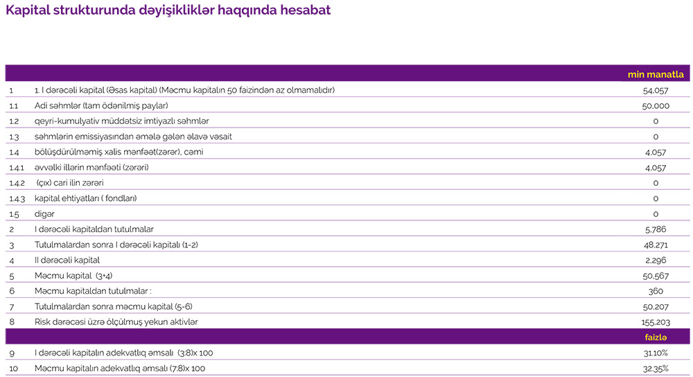 31 Mart 2021-ci il tarixində "Azər-Türk Bank" 50 milyon 207 min manat məcmu kapitala malik olub.