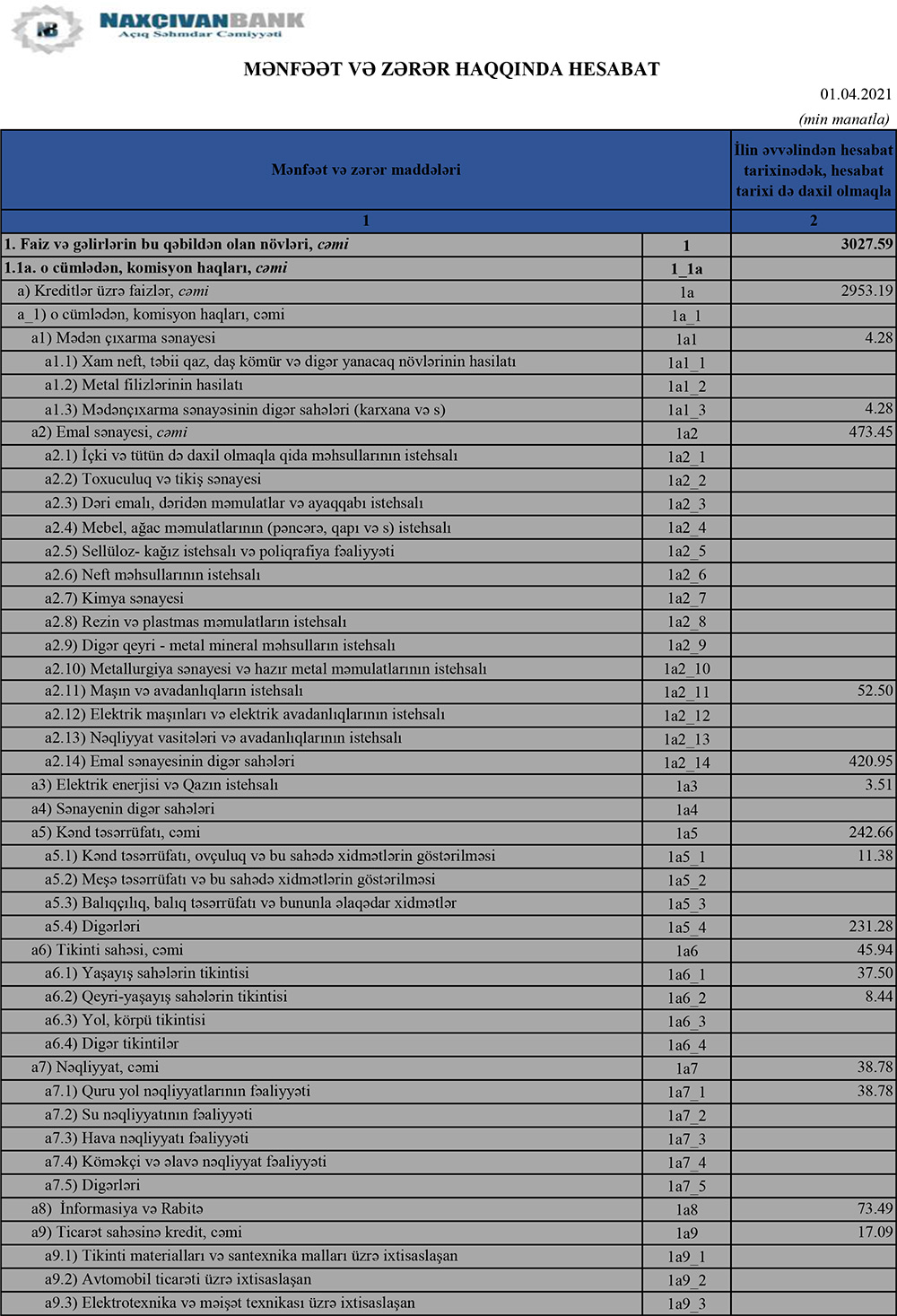 “Naxçıvanbank” ASC 2021-ci ilin ilk rübnü 2 milyon 240 min manat xalis mənfəət ilə başa vurub. Bank ötən ilin ilk rübünü 2 milyon 177 min manat xalis mənfəət ilə bağlamışdı.