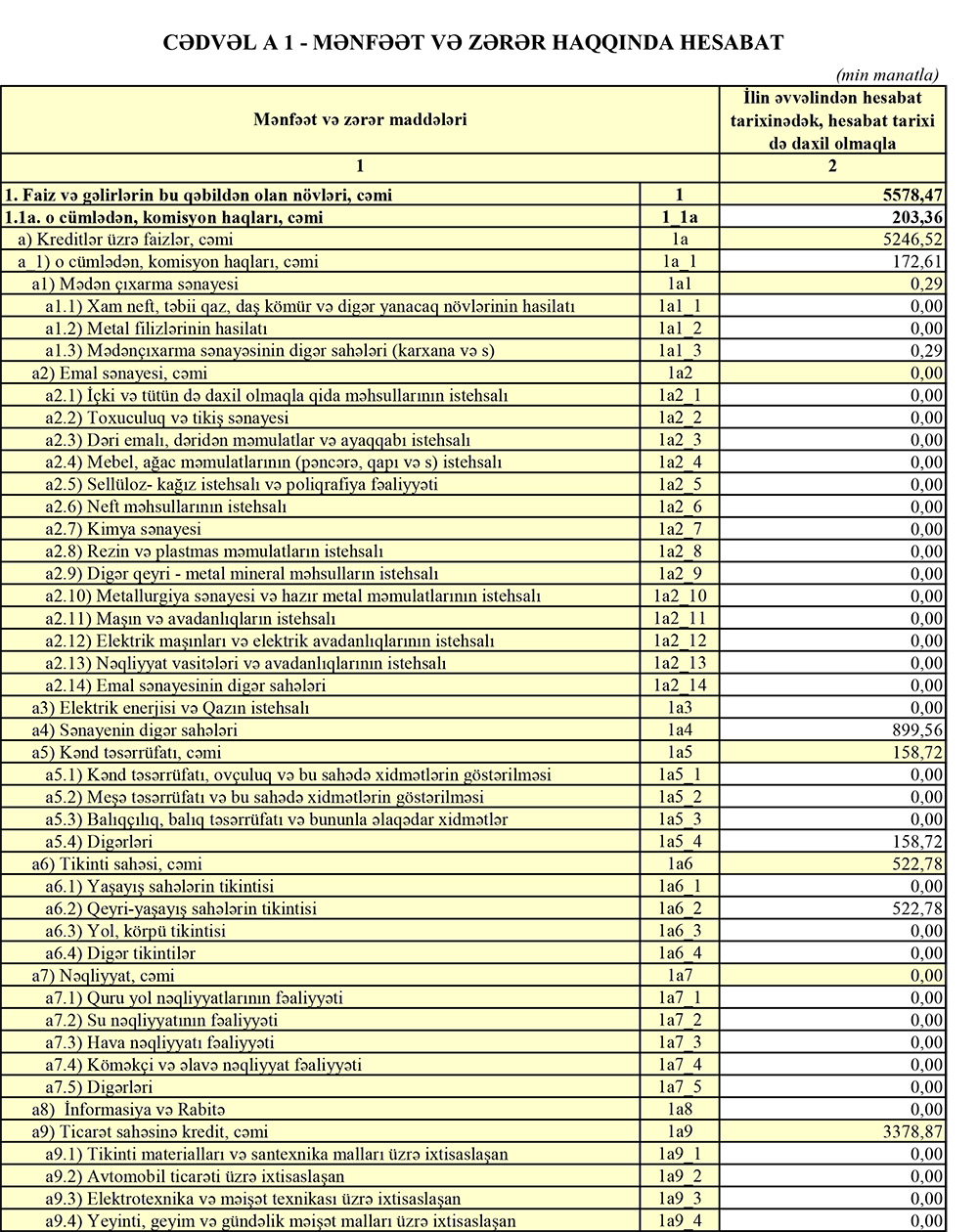 İlk rübdə Bankda cəmi depozitlər isə 151 milyon 868 min manatdan 181 milyon 242 min manata yüksəlib (29 milyon 374 min manat artım).