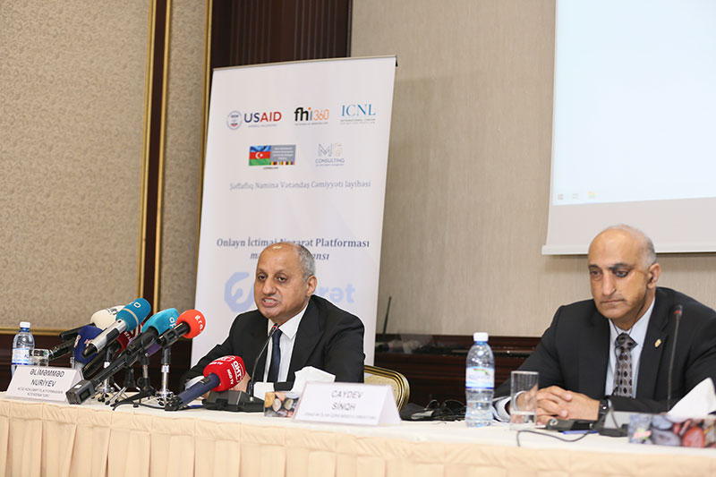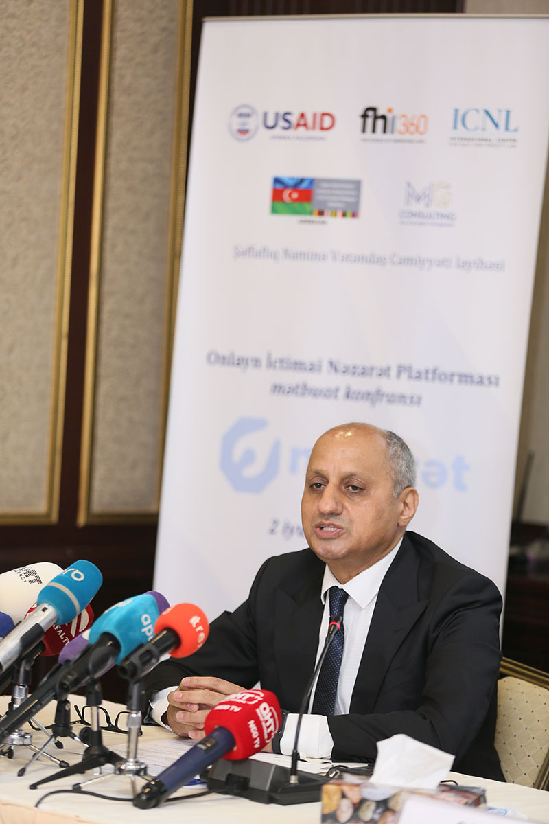 Mətbuat konfransında çıxış edən Açıq Hökümət platformasının koordinatoru Əliməmməd Nuriyev ölkəmizdə ictimai nəzarət və ictimai iştirakçılıq sahəsində qanunvericilik, ölkə rəhbərliyinin siyasi dəstəyi və son illərdə həyata keçirilən fəaliyyətlər haqqında məlumat vermişdir. Əliməmməd Nuriyev Onlayn İctimai Nəzarət Platformasının vətəndaşlar üçün bir çox imkanlar yaratdığını qeyd etmişdir.