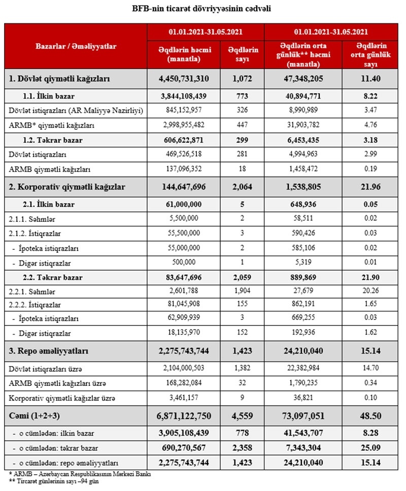 2021-ci ilin ilk 5 ayında (yanvar-may) Maliyyə Nazirliyi dövlət istiqrazlarının yerləşdirilməsi yolu ilə 845 milyon 152 min 957 manat cəlb edib.