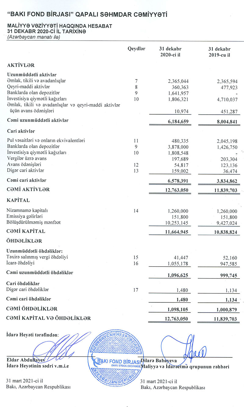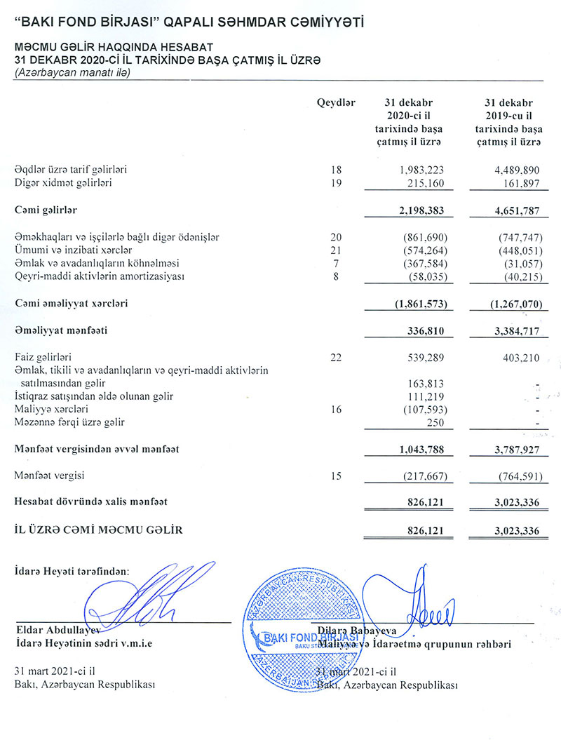 “Bakı Fond Birjası” QSC (BFB) 2020-ci ili 826 min manat xalis mənfəətlə başa vurub.