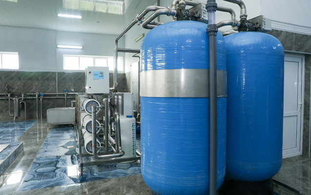 İstehsalat müəssisəsində iş prosesi ilə tanışlığımız fabrikinin su deposundan başlayır. Təmizlik və sanitar-gigyenik qaydalara əməl olunan depoya yalnız xüsusi geyimdə daxil olmağa icazə verilir. Bura fabriki qidalandıran bulaqların suyu 2 boru vasitəsilə daxil olur. Borularda suyun temperaturu 11 dərəcədir. Lakin istehsal prosesi ərzində - qablara yığılana qədər suyun hərarəti 14 dərəcəyədək yüksəlir. Bulaqların başında süzgəc torbasından keçən su fabrikdə 700 tonluq izolyasiya olunmuş membran örtüklü anbarlara doldurulur.
