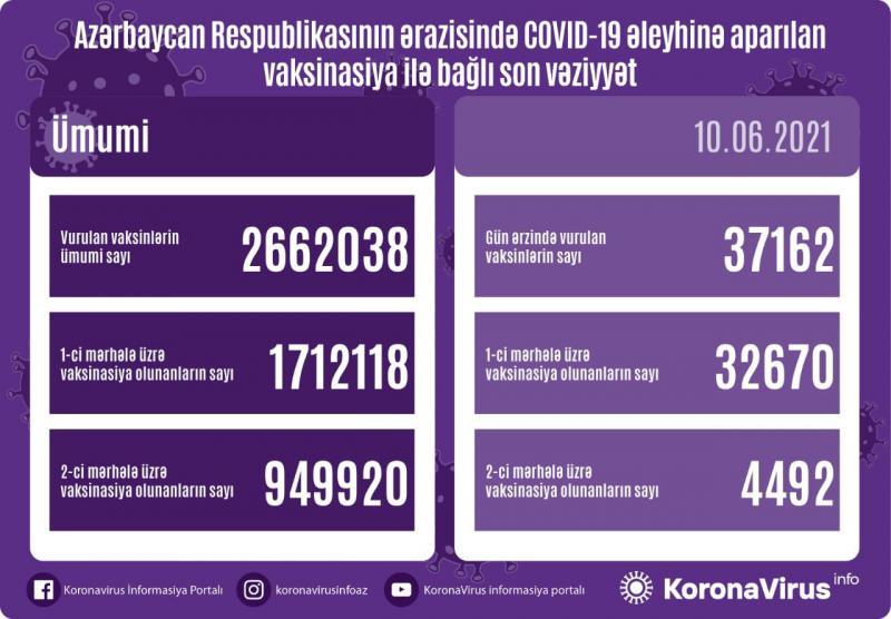 Azərbaycanda bu gün 37 162 nəfər vaksinasiya olunub.