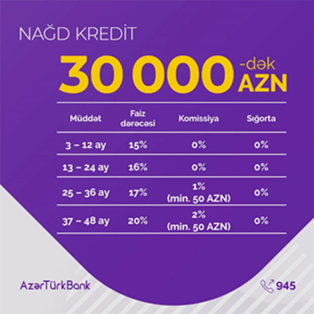 Qeyd edək ki, 24 ayadək verilən kreditlər üzrə komissiya nəzərdə tutulmamışdır.