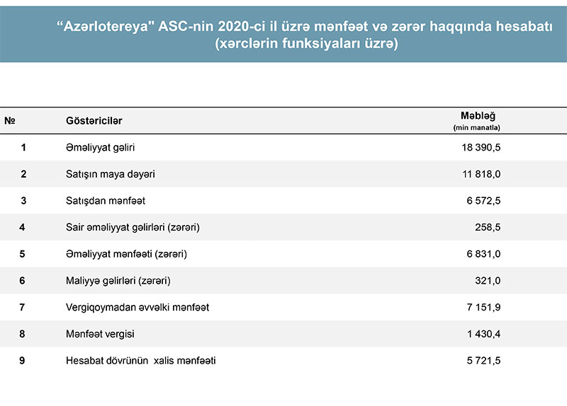 İqtisadiyyat Nazirliyinə məxsus “Azərlotereya” ASC 2020-ci ili 5 milyon 721 min manat xalis mənfəətlə başa vurub.