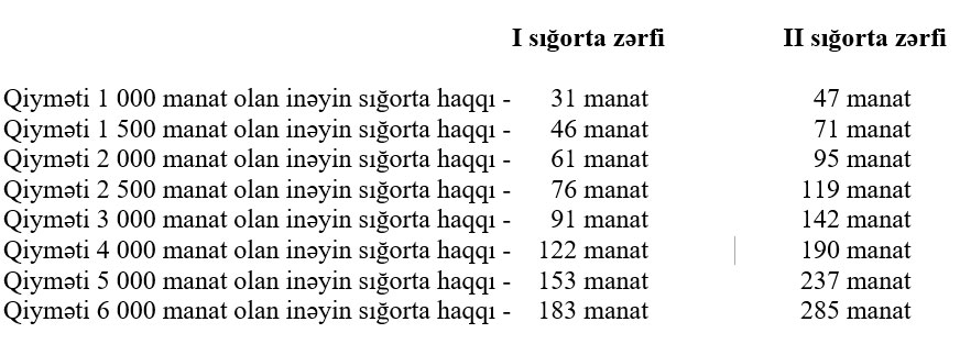 Müxtəlif qiymətə olan inəklərin sığortalanması üçün fermerin ödədiyi məbləğ aşağıdakı kimidir: