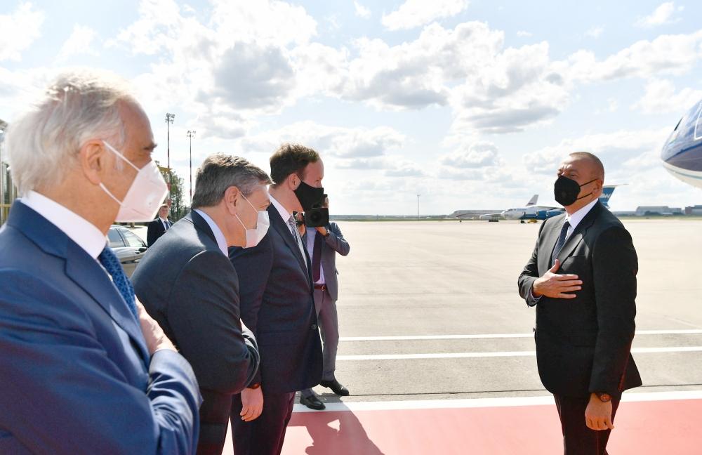 Moskvanın Vnukovo-2 beynəlxalq hava limanında Prezident İlham Əliyevi Rusiya xarici işlər nazirinin müavini Andrey Rudenko və digər rəsmi şəxslər qarşılayıblar.