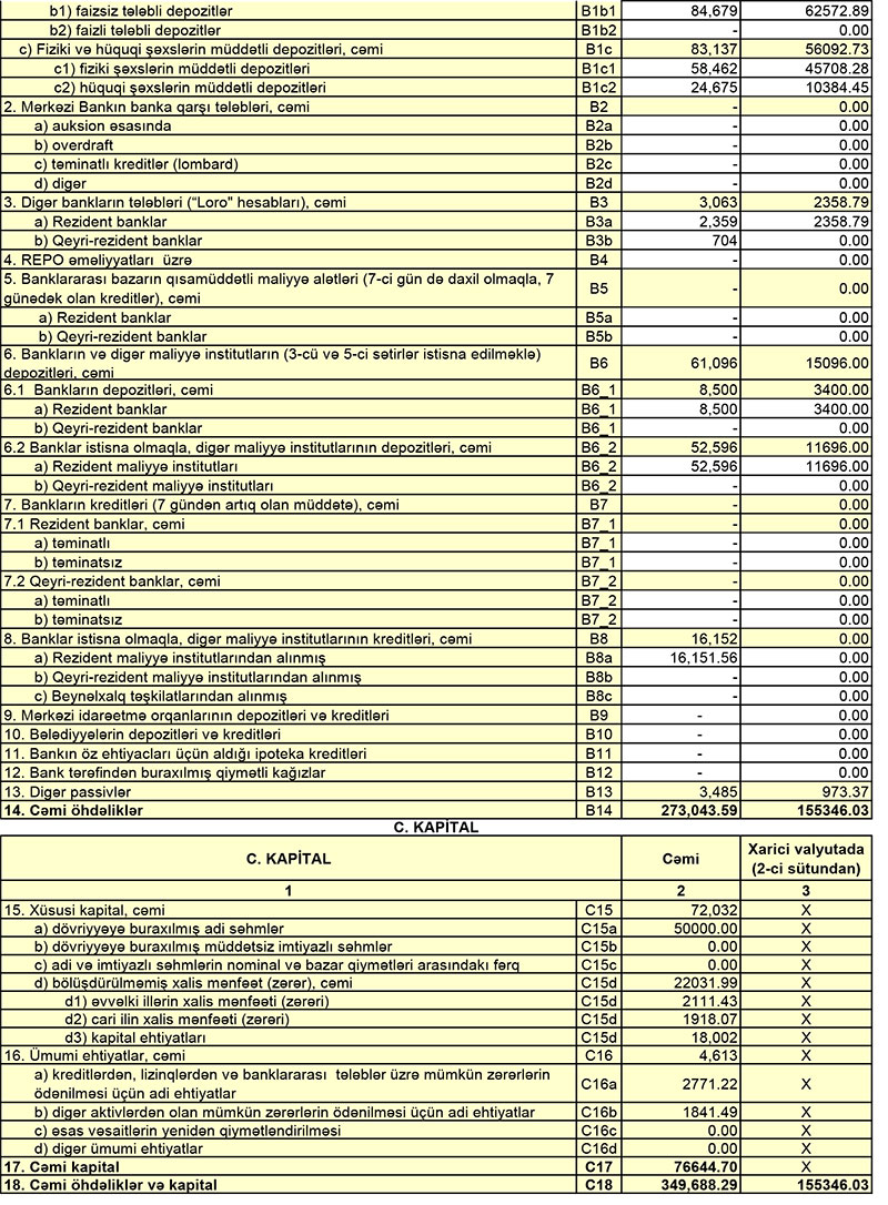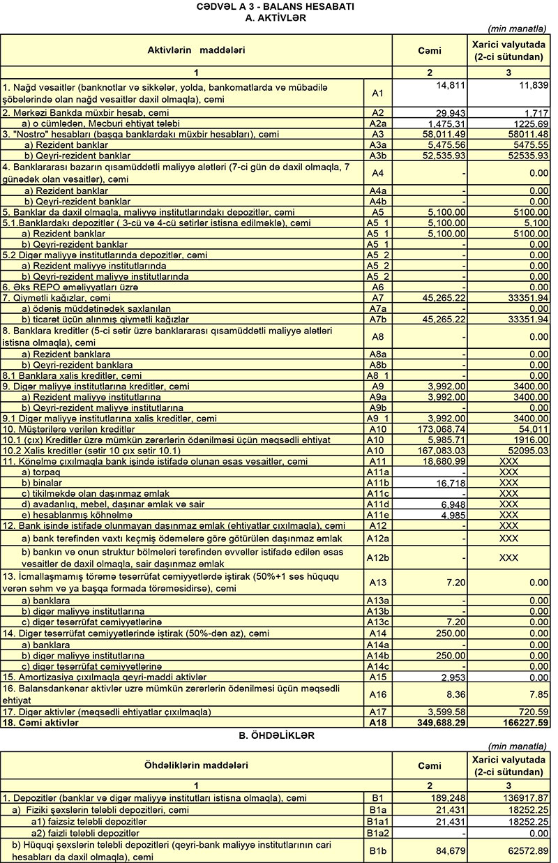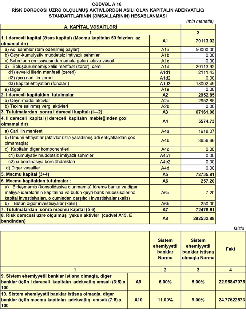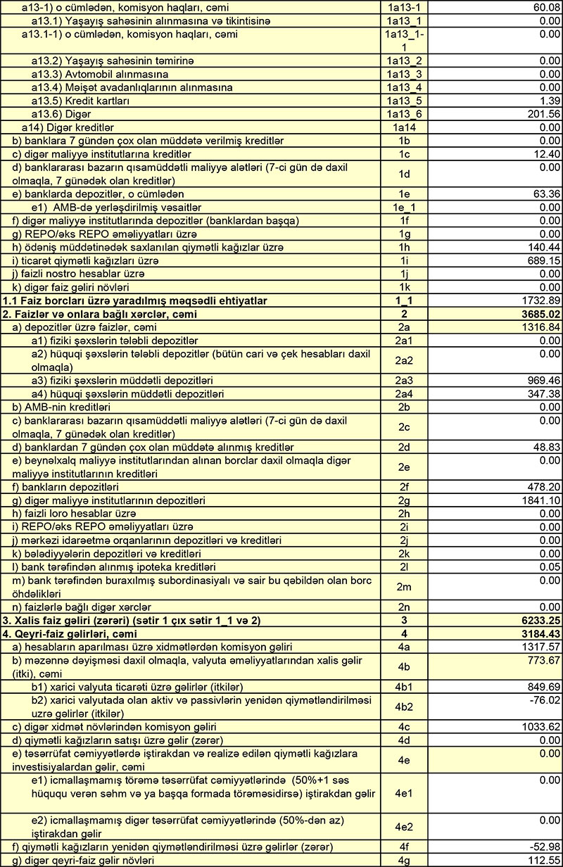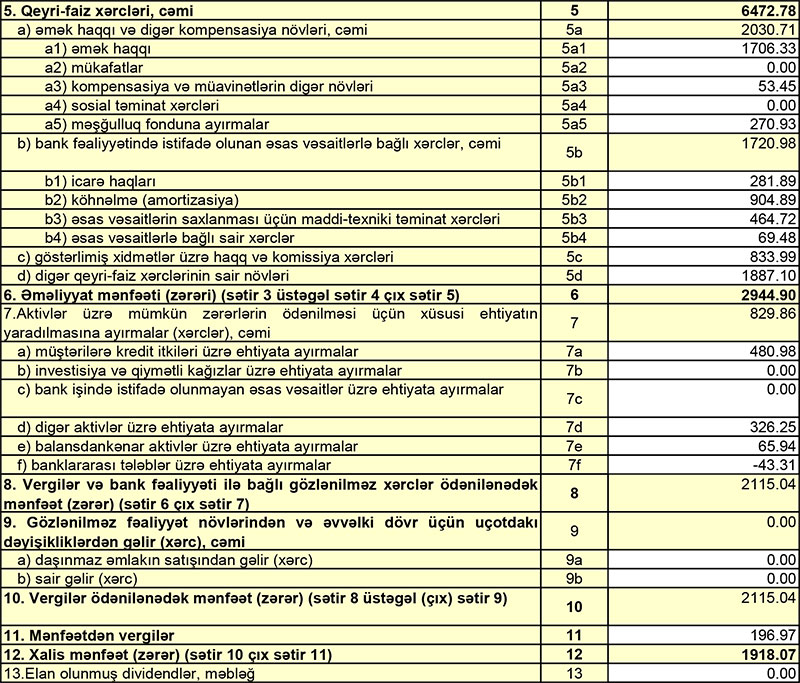 Müqayisə üçün qeyd edək ki, 2020-ci ilin 1-ci yarısında “Ziraat Bank Azərbaycan”ın cəmi əməliyyat gəlirləri 11 milyon 516 min manat, cəmi əməliyyat xərcləri 8 milyon 398 min manat, əməliyyat mənfəəti 3 milyon 118 manat təşkil etmişdi. Əməliyyat mənfəətindən 1 milyon 68 min manat aktivlər üzrə mümkün zərərlərin ödənilməsi üçün xüsusi ehtiyatın yaradılmasına ayırılmış və 303 min manat mənfəət vergisi ödənilmişdi.