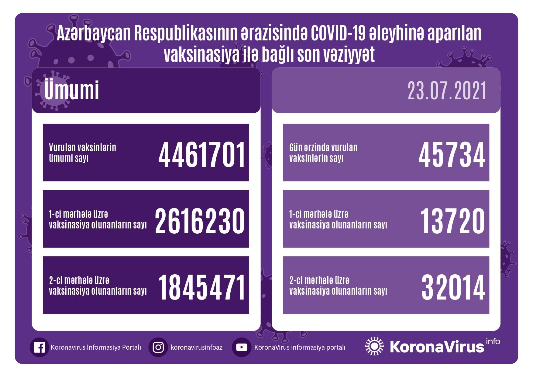 Azərbaycanda son sutkada 45 734 nəfər vaksin olunub.