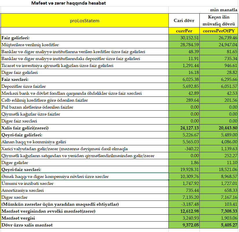 Müqayisə üçün qeyd edək ki, 2020-ci ilin birinci yarısında “Bank of Baku”nun cəmi əməliyyat gəlirləri 32 milyon 228 min manat, cəmi əməliyyat xərcləri 24 milyon 816 min manat, gəlirlər xərcləri üstələdiyindən əməliyyat mənfəəti 7 milyon 412 min manat təşkil etmişdi. Bank 103 min manat mümkün zərərlər üçün yaradılmış məqsədli ehtiyatlara ayırma etdiyindən və 1 milyon 903 min manat mənfəət vergisi ödədiyindən həmin dövrü 5 milyon 405 min manat xalis mənfəət ilə bağlamışdı.