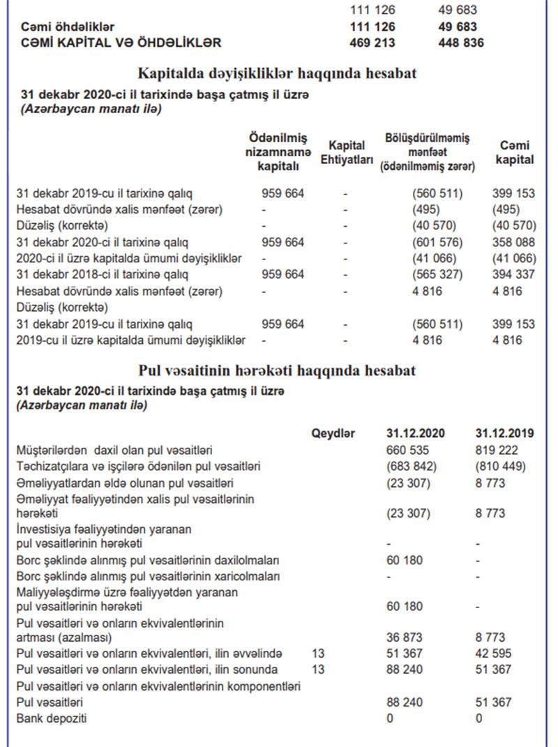 Ötən il şirkət 545 min manat sair əməliyyat gəliri də əldə edib (2019-da 217 min manat).