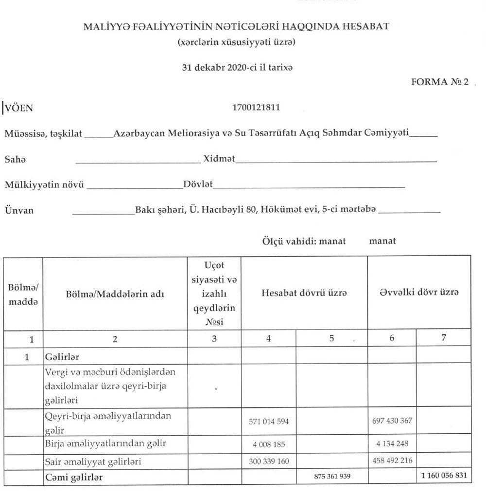 “Azərbaycan Meliorasiya və Su Təsərrüfatı” ASC 2020-ci ili 352 milyon 962 min manat mənfəətlə başa vurub.