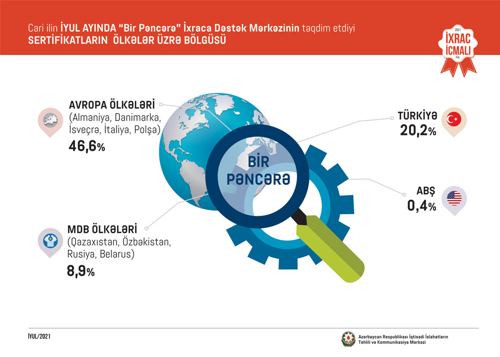 2021-cu ilin iyun ayında qeyri-neft sektoruna aid ən çox mal ixrac edilən ölkələrin siyahısında Rusiya (124.4 milyon ABŞ dolları) birinciliyə yüksəlib. Bu siyahıda Türkiyə ikinci (54.5 milyon ABŞ dolları) və İsveçrə üçüncü (26.5 milyon ABŞ dolları) olub.