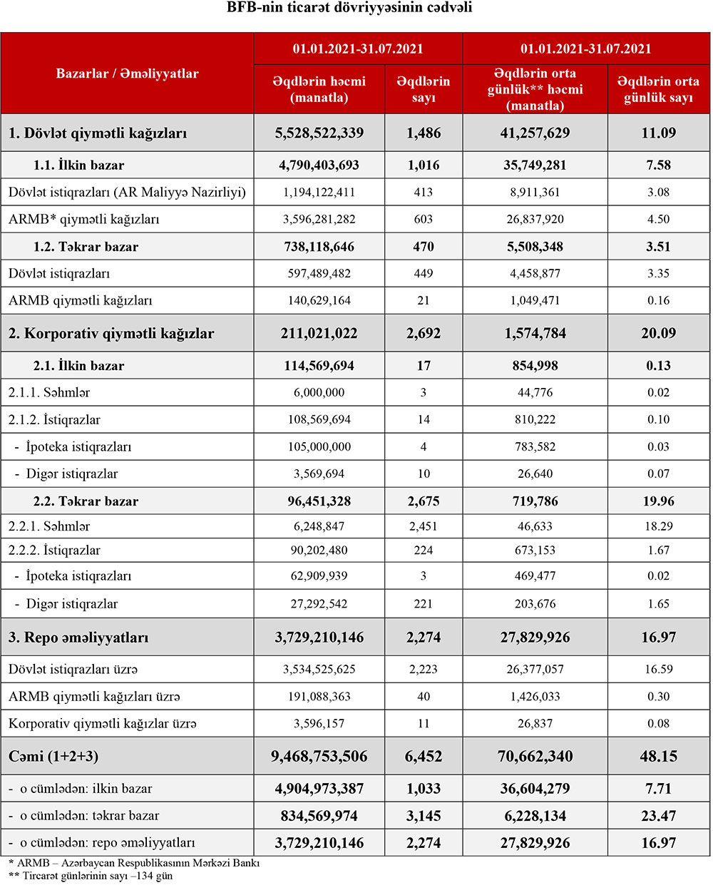 2021-ci ilin 7 ayı (yanvar-iyul) ərzində Azərbaycan Maliyyə Nazirliyi dövlət istiqrazlarının yerləşdirilməsi yolu ilə 1 milyard 194 miluon 122 min manat cəlb edib.