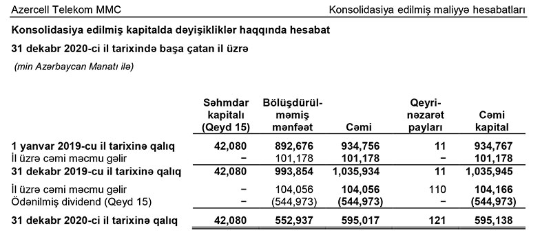 Əvvəlki illərin mənfəətindən 440 milyon 917 min manat və ötən ilin 104 milyon 166 min manat mənfəəti daxil şirkətin 544 milyon 973 min manat mənfəəti bölüşdürülüb. Yəni, ötən il şirkət səhmdarlarına 544 milyon 973 min manat dividend ödəyib.