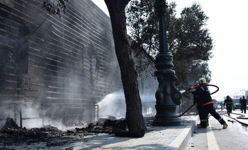 "Bakı şəhəri, Nizami rayonu, Heydər Əliyev prospektində baş verən yanğın 250 kv. m. ərazini əhatə edib. Hadisə nəticəsində penoplastdan olan divarın ön tərəfi, arxa tərəfində yerləşən meyvə tərəvəz bazasının anbarı, həmin anbarın avtomobil təmiri emalatxanaları və orada yerləşən digər tikililər mühafizə olunub".