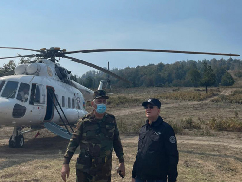 Nazir helikopterlə əraziyə baxış keçirib, yanğının qarşısının alınması üçün aparılan işlərlə tanış olub.