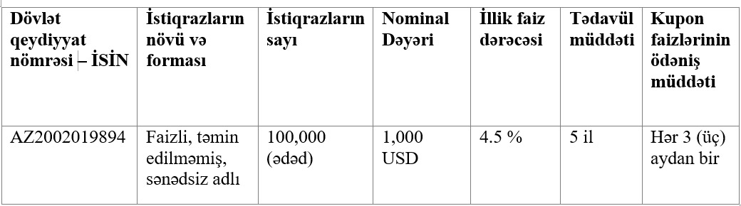 Birjadan Marjaya verilən məlumata görə, qeyd olunan istiqrazların yerləşdirilməsi Bakı Fond Birjasında abunə yazılışı üsulu ilə həyata keçiriləcəkdir.