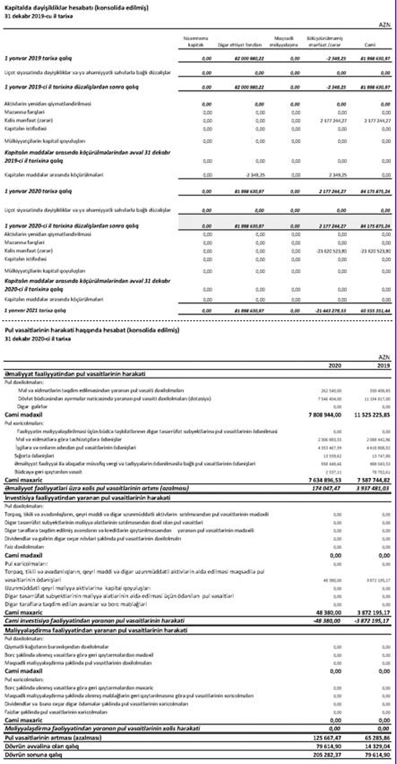 Gəlirlərin azalması ilə əlaqədar olaraq illik əməliyyat mənfəəti 2019-cu ildəki 2 milyon 977 min manatdan 2020-ci ildə 837 min manata geriləyib (3,6 dəfə azalma).