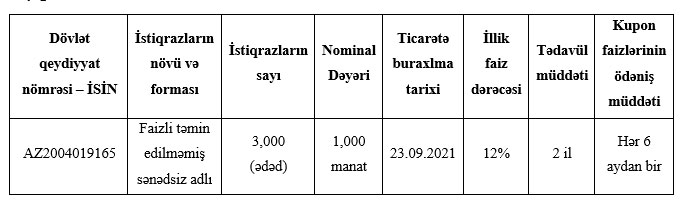 “TBC Kredit” Bank Olmayan Kredit Təşkilatı MMC hər birinin nominal dəyəri 1000 manat olan 3000 ədəd faizli, təminatsız, sənədsiz, adlı istiqrazları buraxır.