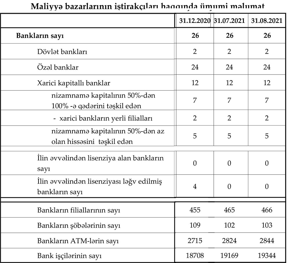 2021-ci ilin avqust ayında bank işçilərinin sayı 175 nəfər, yanvar-avqust dövründə (8 ayda) isə 636 nəfər artıb.