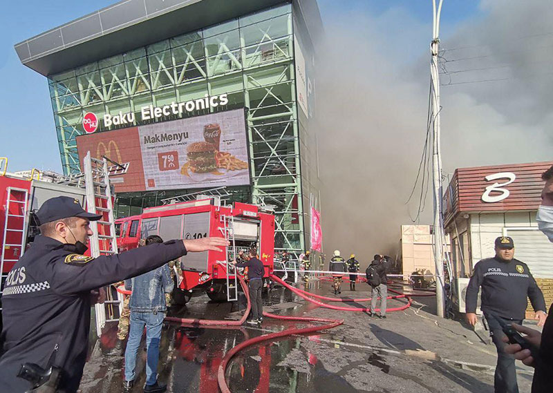 Məlumata görə, ticarət mərkəzinin yaxınlığındakı mobil telefon satışı dükanlarında və aptekdə də yanğın başlayıb.