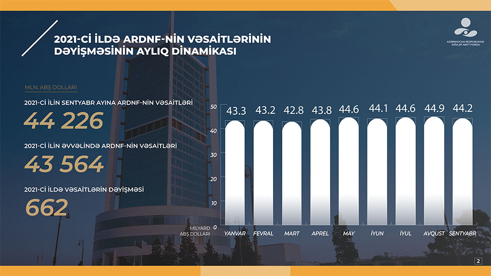Azərbaycan Respublikası Dövlət Neft Fondunun (ARDNF) 2021-ci ilin 9 ayı üzrə investisiya fəaliyyətinin yekunları açıqlanıb.