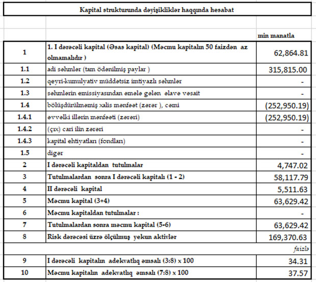 Müqayisə üçün qeyd edək ki, 2020-ci ilin 9 ay ərzində Bankın cəmi əməliyyat gəlirləri 8 milyon 774 min manat, cəmi əməliyyat xərcləri 14 milyon 350 min manat, xərclər gəlirləri üstələdiyindən əməliyyat zərəri 5 milyon 576 min manat təşkil etmişdi. Mümkün zərərlər üçün yaradılan məqsədli ehtiyatlardan azad olmuş 8 milyon 673 min manatın hesabına Bankın 2 milyon 585 min manat xalis mənfəəti yaranmışdı.