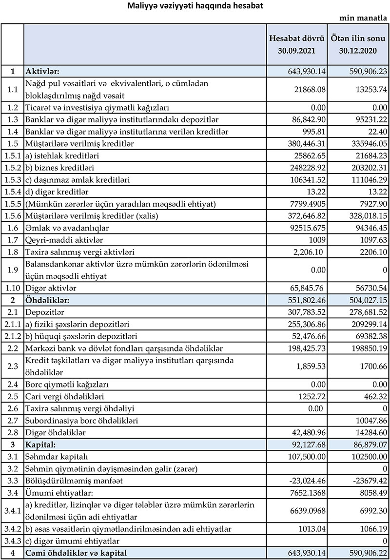 “Muğanbank” ASC 2021-ci ilin 9 ayını 602 min manat xalis mənfəət ilə başa vurub. Halbuki, Bank ötən ilin eyni dövrünü 1 milyon 881 min manat xalis zərər ilə bağlamışdı. Bankın cəmi gəlirlərinin artması və mümkün zərərlər üçün yaradılan ehtiyatlardan azad olmuş vəsait Bankın xalis mənfəət ilə fəaliyyət göstərməsini təmin edib.
