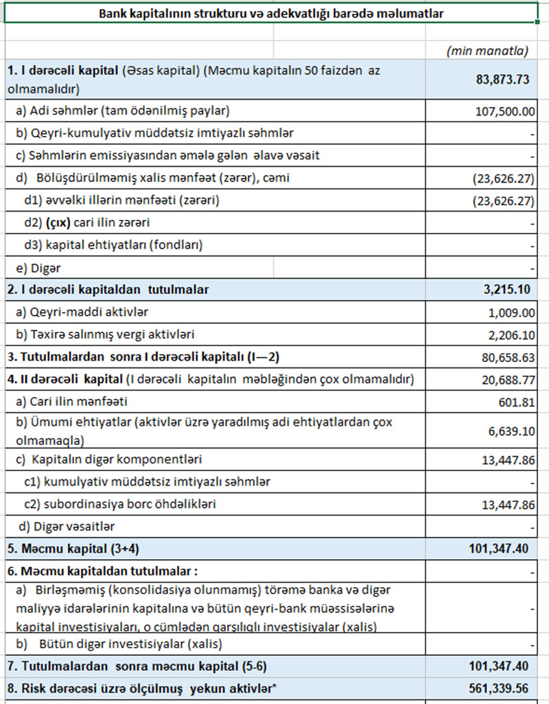 Xatırldaq ki, 2020-ci ilin 9 ayında “Muğanbank”ın cəmi əməliyyat gəlirləri 33 milyon 769 min manat, cəmi əməliyyat xərcləri 35 milyon 335 min manat təşkil etmişdi. Bankın xərcləri gəlirlərini 1 milyon 565 min manat üstələmişdi. Mümkün zərərlər üçün yaradılan ehtiyatlara 315 min manat ayrılması ilə əlaqədar olaraq zərər 1 milyon 881 min manata yüksəlmişdi.
