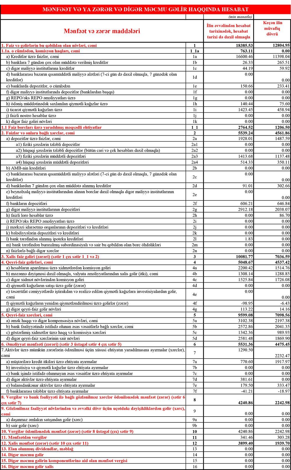 Xatırladaq ki, 2020-ci ilin 9 ayında “Ziraat Bank Azərbaycan”ın cəmi əməliyyat gəlirləri (faiz və qeyri-faiz xərcləri) 17 milyon 342 min manat, cəmi əməliyyat xərcləri (faiz və qeyri-faiz xərcləri) 11 milyon 660 min manat, faiz borcları üzrə yaradılmış məqsədli ehtiyatlar 1 milyon 207 min manat, gəlirlər xərcləri üstələdiyindən əməliyyat mənfəəti 4 milyon 475 min manat təşkil etmişdi. Bank əməliyyat mənfəətindən 2 milyon 232 min manat aktivlər üzrə mümkün zərərlərin ödənilməsi üçün xüsusi ehtiyatın yaradılmasına ayırmış, 303 min manat mənfəət vergisi ödəmişdi. Nəticədə, "Ziraat Bank Azərbaycan" ASC həmin dövrü 1 milyon 940 min manat xalis mənfəət ilə bağlamışdı.