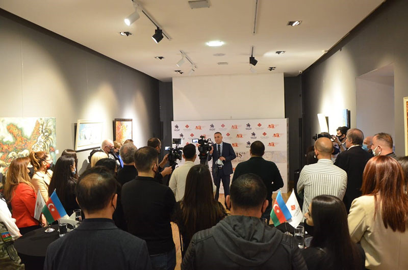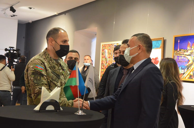 Tədbir başlamazdan əvvəl böyük zəfəri xalqımıza yaşadan şəhidlərimizin ruhu 1 dəqiqəlik sükutla anılıb. Giriş sözü ilə çıxış edən Şirkətlər Qrupunun Müşahidə Şurasının sədri Aydın Talıbov, Azərbaycan Respublikasının xalq rəssamı, Azərbaycan Rəssamlar İttifaqının sədri Fərhad Xəlilov və Fondun rəhbəri, Qarabağ qazisi Elvin Hüseynov bu tarixi günün əhəmiyyətindən və sərginin keçirilmə məqsədindən söhbət açıblar. Bildirilib ki, qəhrəmanlar və onların ailələrinə dəstək olmaq məqsədi ilə təşkil edilən bu sərgiyə qısa zaman kəsiyində 100-dən artıq müraciət olunub, 50-yə yaxın əsər nümayiş üçün qəbul edilib.