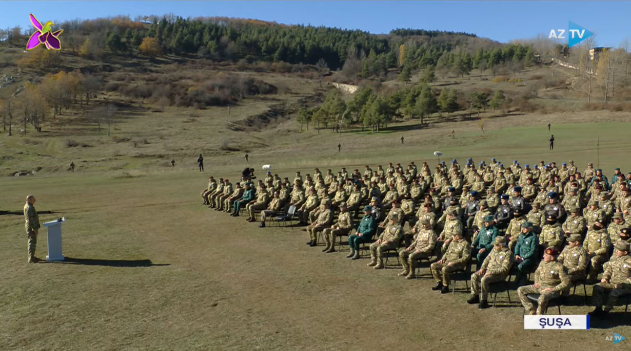 Azərbaycan Respublikasının Prezidenti, Silahlı Qüvvələrin Ali Baş Komandanı İlham Əliyev noyabrın 8-də Şuşada hərbçilər qarşısında çıxış edib.