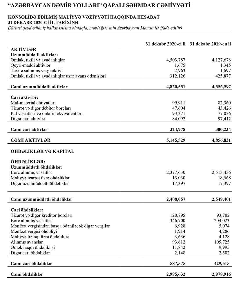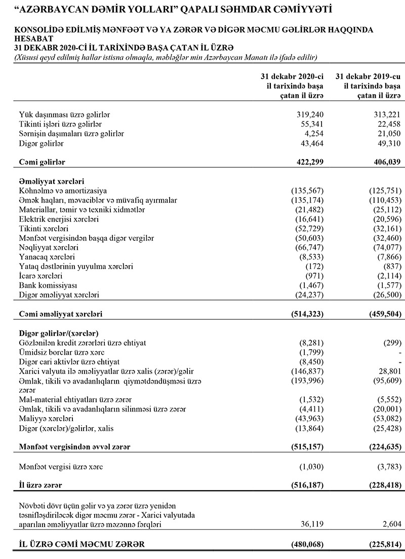 "Azərbaycan Dəmir Yolları"nın yığılmış zərəri 2 milyard manatı keçib“Azərbaycan Dəmir Yolları” QSC 2020-ci ili 516 milyon 187 min manat xalis zərərlə başa vurub.
