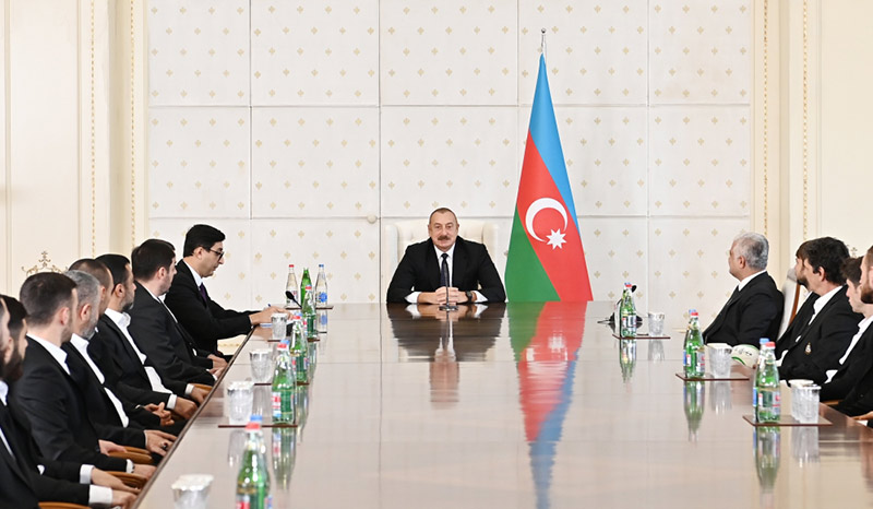 İlham Əliyev futbol klubunun üzvlərini qəbul edib