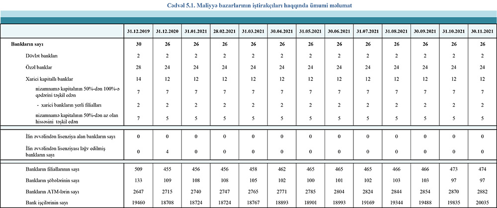 2021-ci il üzrə bank icmalı30 noyabr 2021-ci il tarixinə olan bank sektorunun əsas göstəriciləri açıqlanıb.